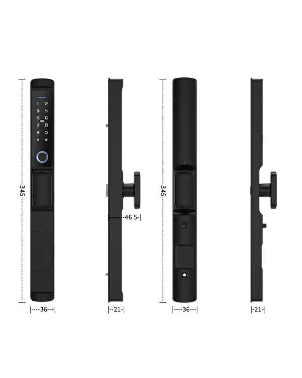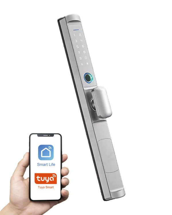 - 5 métodos de apertura (huella digital, tarjeta RF, APP Telefónica, clave digital, llave física de emergencia.