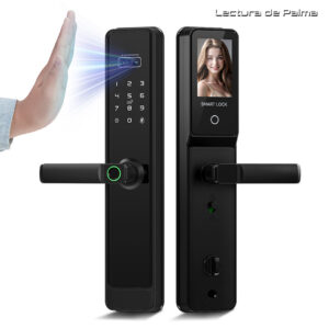 - 7 métodos de apertura (Reconocimiento facial, huella digital, Lectura huella de palma, tarjeta RF, APP Telefónica, clave digital, llave física de emergencia).